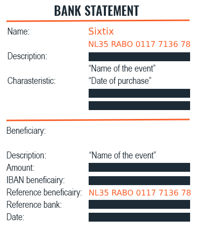 With help of your order number and your e-mail address you can easily request your tickets. The order number can be found on your bank statement (showed in green on the right).